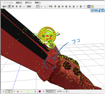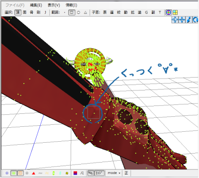 窓の左下端にある、青い◎をクリックして、ボーンの表示を消します。